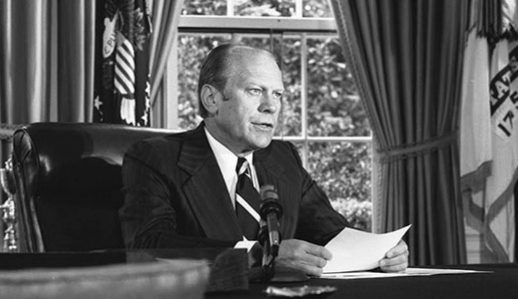 . Agriculture Act Amendments (1975). . A strip mining bill that would set federal standards for surface mining regulation, which he vetoed (1975). . A House resolution disapproving of his plan to decontrol prices for domestic oil over a 39-month period (1975). . A tax reduction bill reducing 1976 individual and business taxes without establishing a $395 billion fiscal 1977 federal spending ceiling, which he vetoed (1975). . A bill authorizing $6.5 billion in financial assistance to railroads, which would simultaneously reduce regulation by the Interstate Commerce Commission (1975). . A bill that would grant Congress the right to review any proposal to decontrol oil prices and require the president to place price ceilings on any oil not currently controlled (1975). . Deleting funds for the B-1 Bomber (1975). . Deferring funds for the Flight-Testing Maneuverable Reentry Vehicle until it can be established that the Soviets are flight testing their own system (1975). . The Clark Amendment, limiting US involvement in Angola to gathering intelligence (1975). . Only deregulating small oil producers while keeping big oil producers price-controlled (1976). . Extending 65-week employment assistance until March 31, 1977 and special benefits for the uninsured to December 31, 1976 (1976). . Permitting federal civilian and postal workers to participate as private citizens in political campaigns and protecting employees from improper political solicitation, a scaling back of the Hatch Act (1976). . The Public Works Anti-Recession bill, making grants for public works programs for the explicit purpose of reducing employment, his veto being overridden (1976). . The proposed Voter Registration Act, which would have created a voter registration commission in the Federal Elections Commission to register voters by mail (1976). Note on this one: Republicans opposing measures that are touted by their Democratic proponents as expanding voting access is nothing new. . A bill increasing funding for the Departments of Labor and Health, Education and Welfare by $915,839,318 over his budget, with his veto being overridden (1976). . A bill providing financial assistance for low-income people to insulate their homes and to push state and local adoption of energy conservation standards in new buildings (1976). . A bill for no-fault auto insurance (1976). . A bill establishing a government agency for grain inspection that would not be limited to federal export ports, thus moving into authority previously in the purview of states (1976). This is consistent with Ford’s consistent sense of federalism, his belief that liberal Democrats push measures on the federal level that improperly intrude in state prerogatives. . A bill increasing Congressional control over U.S. arms sales (1976). . A bill providing for federal child day care services under the Social Security Act, which he vetoed (1976). . An amendment barring funds for the B-1 Bomber program before February 1, 1977 (1976). . Another bill for public works for the purposes of increasing employment, in which Congress overrode his veto (1976). He supported: . The proposed South Vietnam Assistance Act, which if enacted would have spent $327 million for humanitarian and evacuation programs in South Vietnam and for the use of U.S. troops to assist evacuations. This measure got a lot of opposition out of fear that the US would be dragged into conflict in Vietnam again (1975). . A bill providing for automatic cost-of-living increases in pay for members of Congress and top officials in the executive, legislative, and judicial branches (1975). . Killing a proposal that disapproved of his proposed 5% pay increase for members of Congress, military personnel, and federal government officials, which would have instead resulted in a 8.66% pay increase proposed by the Advisory Committee on Federal Pay (1975). . $2.25 billion in funds for the Inter-American Development Bank and funds of up to $25 million for the African Development Fund (1975). . Partially lifting an arms embargo to Turkey (1975). . Loaning up to $2.3 billion annually to New York City (1975). Ford however did not approve of any measure that would fully bail out the city, resulting in a famous headline from the New York Daily News: Ford to City: Drop Dead (New York Daily News). Although Ford never uttered such words, this was how his threat to veto any bailout was taken. . The proposal by Rep. Charles Wiggins (R-Calif.) to investigate whether increasing fines is effective for anti-trust regulation instead of an anti-trust bill (1976).
