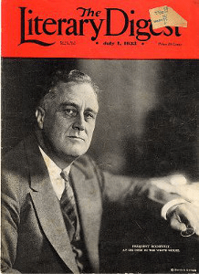 The Literary Digest conducted one election straw poll per year, and they used three lists as sources: phone numbers, drivers’ registrations, and country club memberships (Emory Oxford College). For 1936, they contacted 10 million people for their survey, and from this they got 1,293,669 people who supported Landon and 972,897 people who supported Roosevelt. This approach had multiple methodological problems. The first, the conventional story, is that The Literary Digest had failed to account for the class polarization that came with the Roosevelt Administration…Americans in previous elections had voted more similarly based on class. Many working-class Americans in the North voted Republican in the past elections, and while the 1920s prosperity was part of it, they also supported the GOP’s high tariff platform, a mainstay as old as the party’s 1856 platform. However, FDR’s New Deal programs were highly appealing to many Americans going through hard times, while many in the upper strata had the luxury to think more about FDR’s growing political power as a source of peril and his policies were coming greatly out of their pockets. That the wealthy were overrepresented among those who had telephones, vehicle registrations, and country club memberships should go without saying.